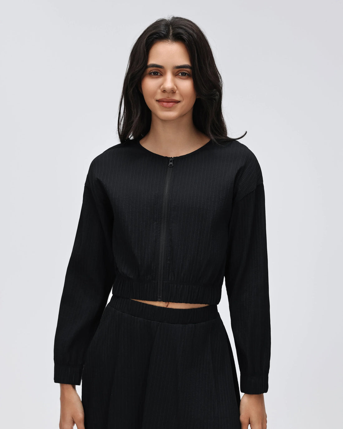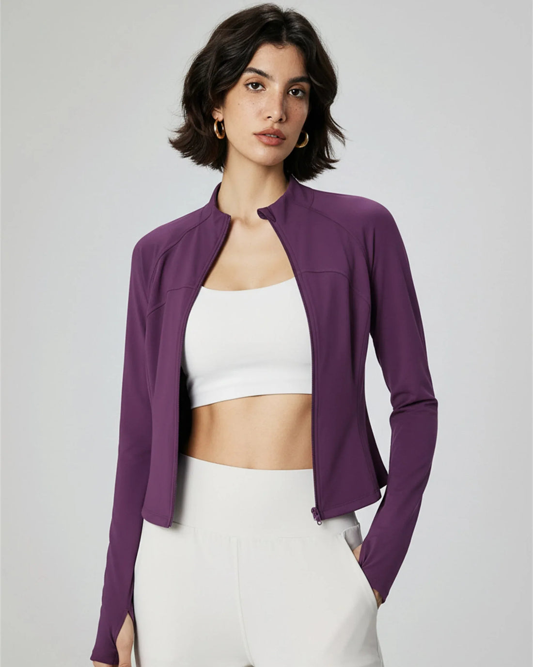 Cropped Full-Zip Workout Hoodie This zip-front jacket features a smooth, durable zipper for easy wear...