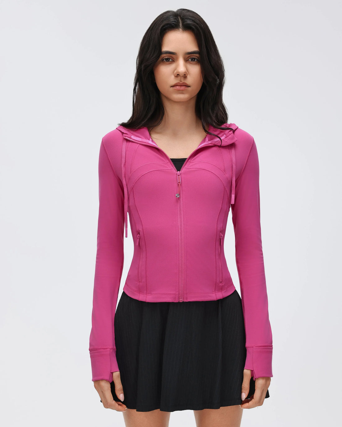 Windproof Hooded Crop Fitness Jacket A contemporary bomber jacket defined by its clean structure. It...