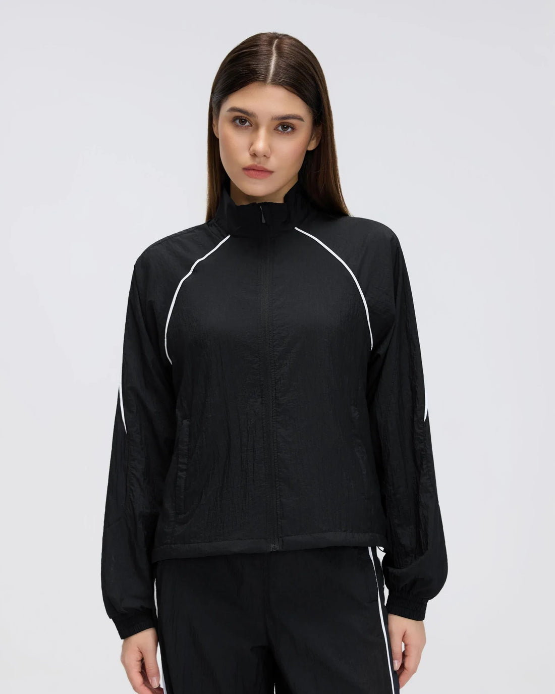 Windproof Stand-Collar Cycling Jacket A functional wind-resistant jacket with a stand-up collar and full-zip closure....