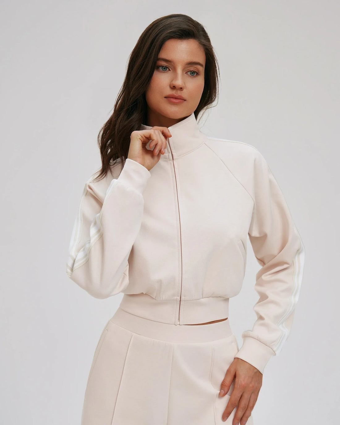 Stand-Collar Zip-Up Yoga Jacket This fitted training jacket features a stand collar with a full-zip...